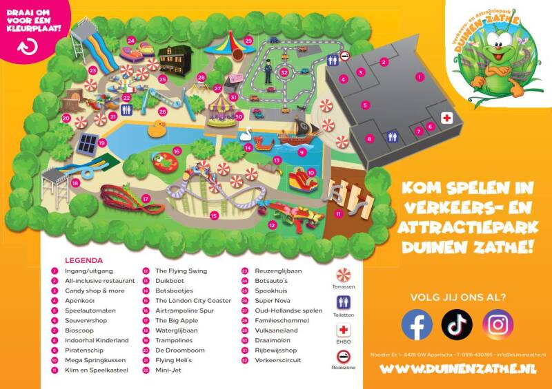 Der Verkehrs- und Vergnügungspark Duinen Zathe ist ein All-Inclusive-Erlebnispark. Das bedeutet: Mit deinem Eintrittspreis erhältst du Zugang zu allen Attraktionen sowie eine Flatrate für Essen und Getränke! Perfekt für einen stressfreien Ausflug nach Friesland – ideal für Familien, die den Tag unbeschwert genießen möchten. Da du dir keine Gedanken über Verpflegung machen musst, sparst du dir zusätzlichen Aufwand und Kosten. Praktisch, oder? Wir kümmern uns um dein leibliches Wohl!